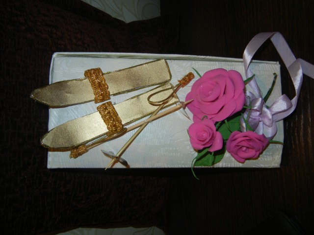 На юбилей коллеге сделала букет цветов и лыжи т.к. она у нас лыжница.