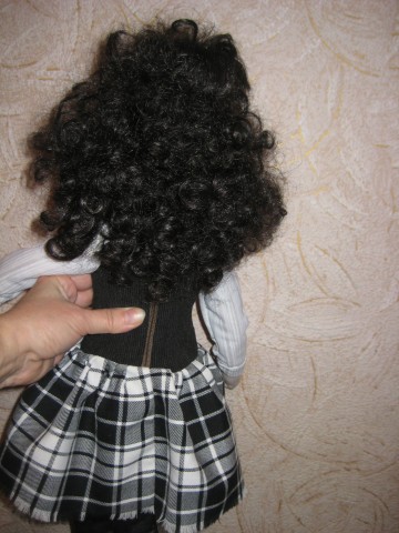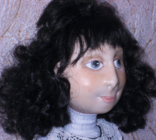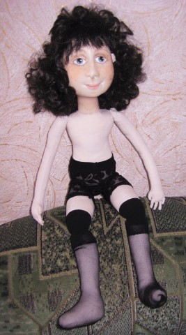 Текстильная кукла ручной работы изготовлена из бязи и трикотажа в технике грунтованный текстиль с объемным личиком. Волосы- высококачественный канекалон, личико расписано акрилом и пастелью. Сидит или стоит на подставке. Руки, ноги подвижны, коленки сгибаются. Одежда съемная. Рост- 57 см. Куклой можно играть, а можно просто украсить интерьер.