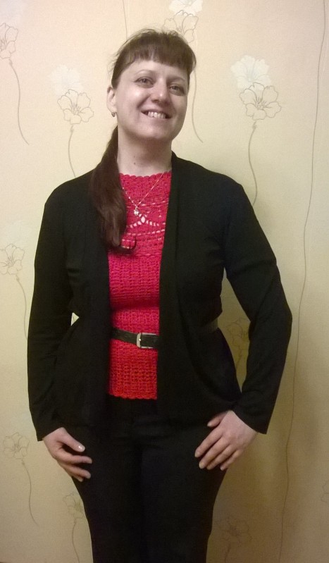 Всем добрый день. Представляю на Ваш суд мое первое крупное изделие - кофточку крючком.
