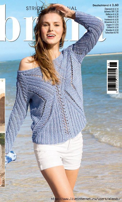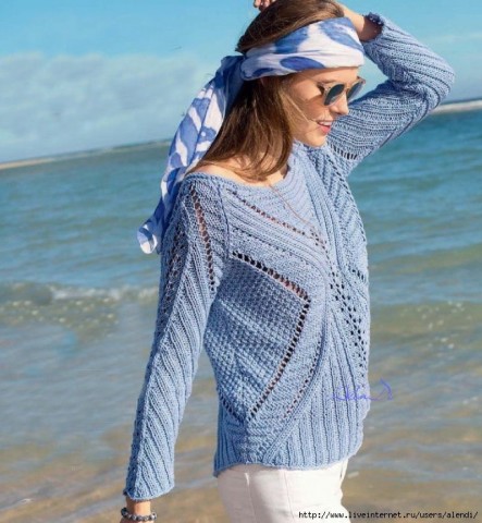 Внимание: за счет равномерного ритма прибавок и убавок на спинке и рукавах вязание имеет диагональное направление, в результате нижний край образует углы.