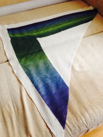 Потом вдоль короткой стороны набираем 125 петель и вяжем основной треугольник.