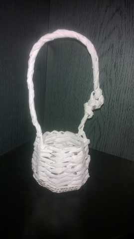Корзинки (из газетных трубочек) с цветами (из лент в технике канзаши)