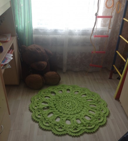 Планирую пришить на обратную сторону резиночки, чтобы не скользил по ламинату. Нашла в инете подсказку - пришить резинки от крышек, которыми банки закатывают. Но пока еще думаю...мне кажется, это не очень красиво будет.