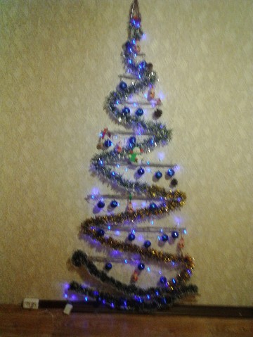 Увидела на просторах интернета настенную елку. Очень понравилась! Решила к Новому Году сделать и себе такую же. А потом так увлеклась, что сделала еще одну, а потом еще одну. Теперь у меня две елки. Одна висит в столовой - на ней все шарики красные и гирлянда с разноцветными огнями, вторая в холле - на ней шарики все синие и гирлянда горит только синим цветом. А третью забрал младший сын в компанию, где встречал Новый Год.