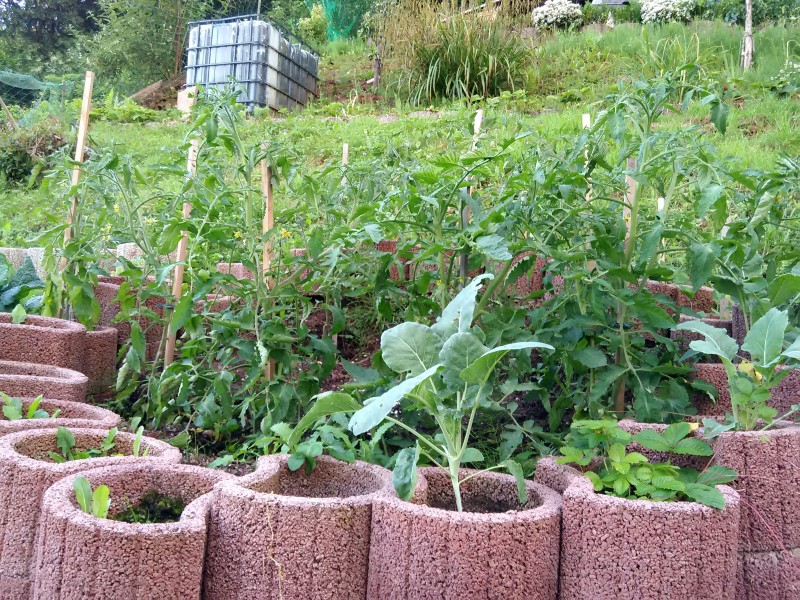 Вот такой огород. Поскольку родная земля нам досталась грубая и неплодовитая, я использовала в грядках покупную землю и компост из кухонных остатков, веточек и скошенной травы.