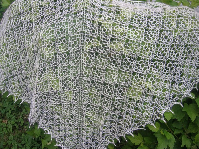 .Кстати , в шали было два варианта каймы , я выбрала большую и размеры у меня вышли вот такие : длина по ленточке 1м76см , по ЦП 85см , бисера 25гр (876шт) , вес шали с бисером 85гр .