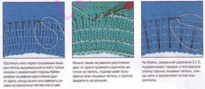 Если вяжется изнаночная петля, то резиновая нить должна располагаться перед петлей.из инета