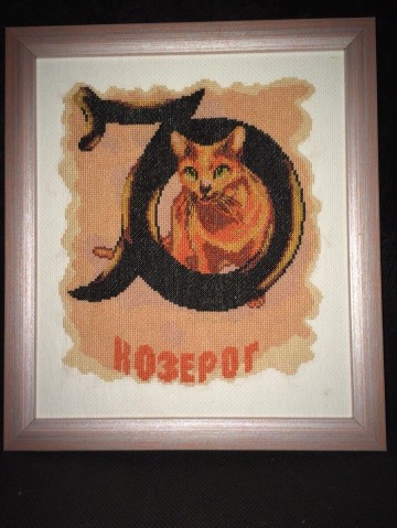 Это мой любимый Магический Котик на трубе. Нитки подберала по каталогу ДМС. Я вообще люблю вышивать только большие работы. Раньше очень много вышила на заказ. Фотографий к сожалению не осталось.