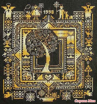На первую годовщину семейной жизни к основному подарку вышила своим старшим детям вот такой оберег. Оберег уехал в Киев, я снова забыла сфотографировать готовую работу, поэтому сын сфоткал и снова прислал мне по эл.почте. Может кто-то захочет и для своих детей вышить, поэтому схема прилагается. Удачи всем в творчестве!