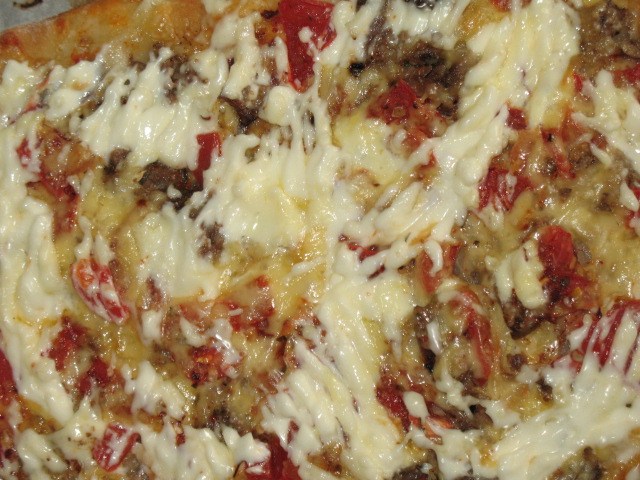 Всегда смеюсь, когда в России меня пиццей домашней угощают.Это не пицца, это целые русские пироги! В пицце тесто тонююююсенькое и пресное: вода и мука.И никакого майонеза :-))