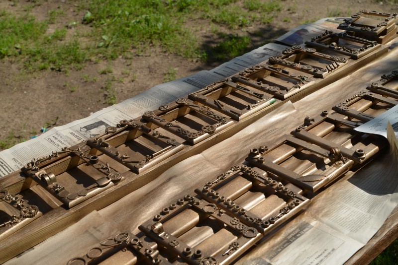 Отличные работы! Молодцы! А на какой клей приклеивали металлические гаечки, винтики.?