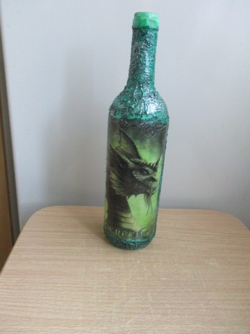 Всем доброго времени суток )) сделала бутылку из трилогии о драконах )) и вот мой измрудный дракон )))