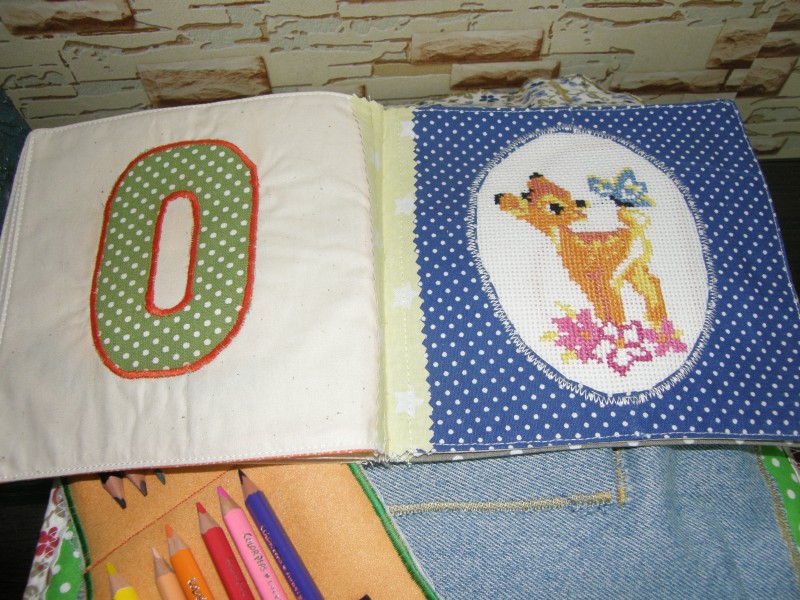 Реально — исключительной полезности книга. Мягкая, приятная, интересно начиненная — это оценит ребенок. Ну а мы конечно же — строчки, вышивка, подбор цветов, идейки… Все вместе все-таки — Отвал башки!