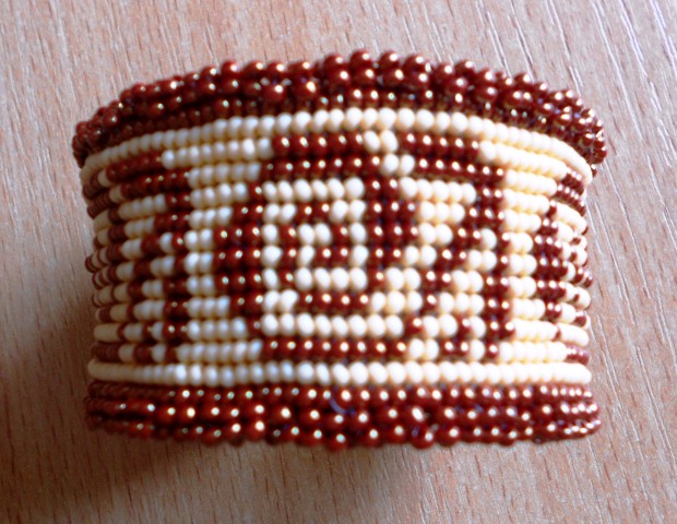 Доброго дня. Хочу представить вам мое авторское творение. Авторское на все 100% ))) От разработки схемы и подбора бисера до идеи кожаной изнанки браслета. Да, браслет состоит из двух частей - бисерная лицевая сторона и кожаная внутренняя. Держит форму вполне прилично, при этом нет ощущения жесткости, как у браслетов на металлической и деревянной основе.