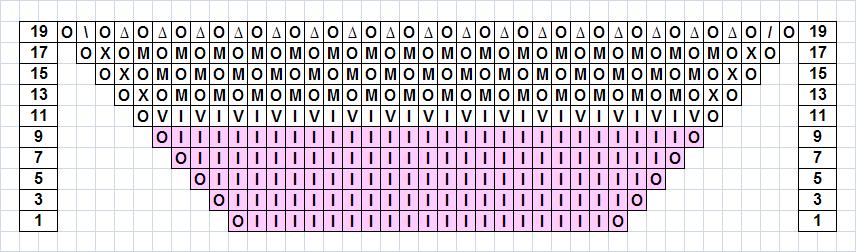 И не забывайте на углах делать прибавки (см. розовую секцию в Схеме 2).