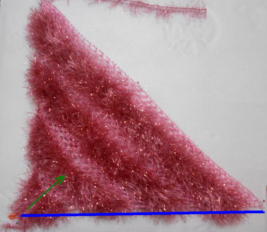 Только в этом случае пометьте маркерами одного цвета все углы палантина и маркером контрастного цвета то место, где будет начинаться/заканчиваться ряд (желательно, чтобы новый ряд начинался с одного из углов).