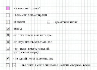 Лицевой ряд: первую петлю снять не провязывая, 1 лицевая, далее по схеме, 2 лицевые петли.