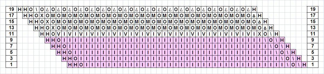 Обратите внимание, на этой схеме появились и кромочные петли (обозначение Н в начале и в конце ряда).