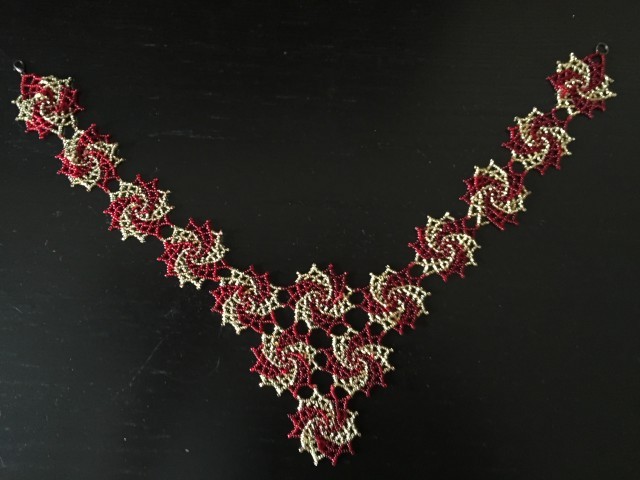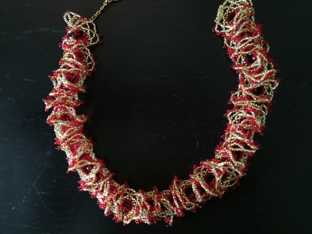 А поделитесь схемой или ссылкой на колье красно-бежевое плоское — четвертое фото. Заранее спасибо. Тоже увлекаюсь бисером и плету для дочки украшения.