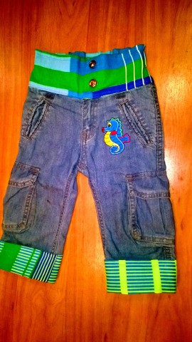 Я тоже пару месяцев назад реанимировала для внука подруги несколько трикотажных штанишек.
