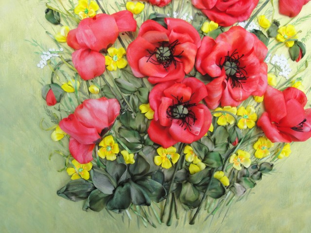Ваш букет, Людмила, это образец вышивки маков в разных ракурсах! Это наглядное пособие для вышивальщиц лентами!