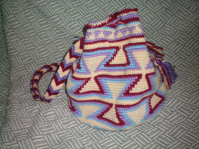 Как-то в интернете я наткнулась на фотографии, сделанные в Колумбии. Меня поразили традиционные сумки-торбочки, которые уже много веков вяжут индейцы племени wayuu. Я вообще неравнодушна к этническим узорам в вязании, а тут просто спать не могла, так зацепило меня многоцветие и яркость орнаментов. И я решила тоже попробовать: