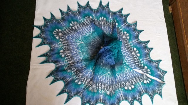 Доброе время суток, дорогие девочки. Уже чуть ли не месяц, как я закончила шаль по мотивам Герберта Ниблинга по совместнику Елены. Вязала из Кауни 800 / 1,вес 102г, по ленточке 156, по центру 78. А вторую крошку Малюгу связала по небольшому МК Тамары. Остатки пряжи были, вот и решила их использовать. Вес всего 30г, Размер 30х 130,хотела побольше, Спасибо большое Елене и Тамаре за их работу. Фотографировать еще не получается хорошо.