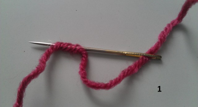 - 3.Вдеваем в иглу вторую нить и проходим через петлю на первой нити. (3)