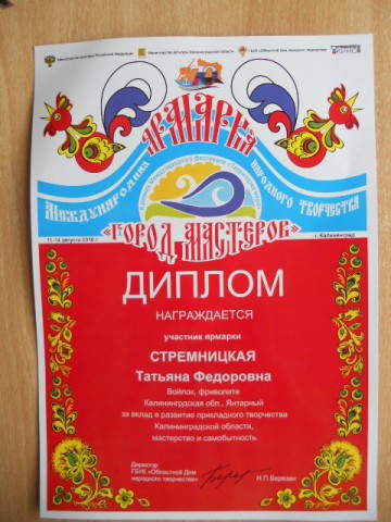 Поздравляю! У Вас замечательные работы. А ярмарка в Калининграде была? В каком месте она проходила?