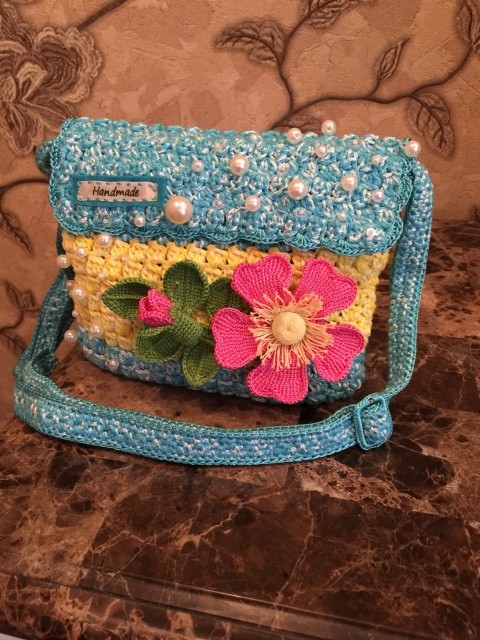 А, вот увидела, что в тегах это сумочка для девочки. Конечно, тогда просится какой-то яркий акцент.