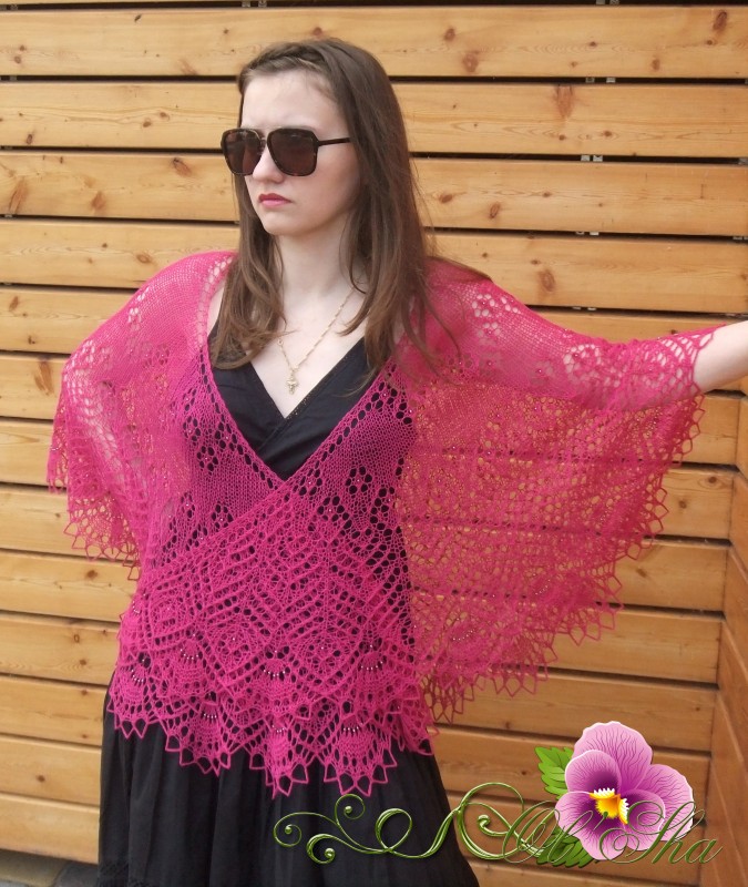 Связана из 100% тонкой мериносовой шерсти, цвет малиновый (цвет плохо передался), украшена чешским бисером.