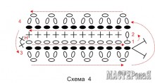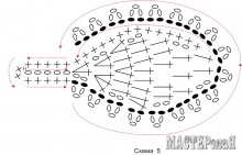 Листья 2 и 4 вяжем следующим образом: 2 в.п. замыкаем в круг, провязываем в первом ряду 5-6 ст. б/н, а во втором ряду - 3-4 листа по схеме 4.