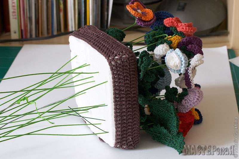 Корзиночку можно сделать самим из чего угодно, можно даже воспользоваться готовой. А вот как вязать цветочки нам расскажет автор - Наталья Грухина