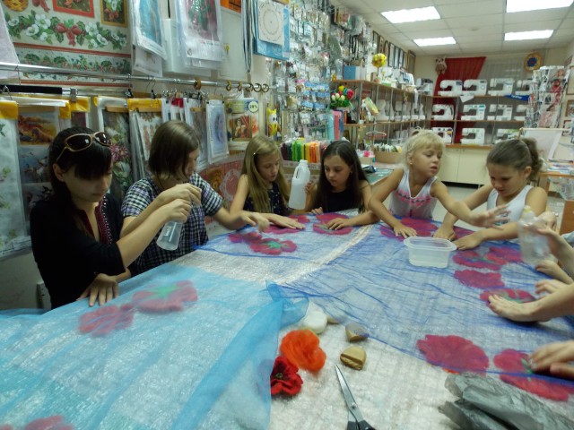 Конечно одному проводить МК для 12 деток сложно, ведь каждому нужно уделить внимание и помочь, а валяние это процесс не быстрый, но все получилось. Правда досушивать маки детки забрали домой.