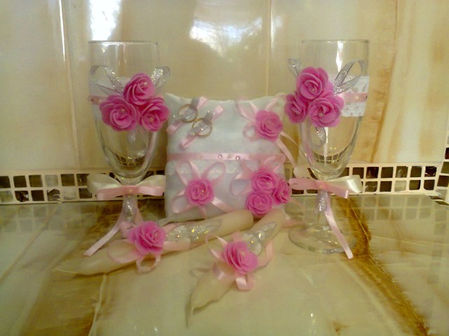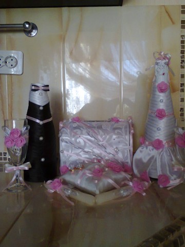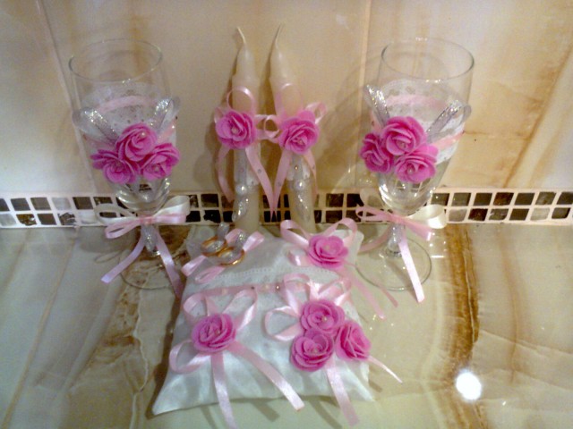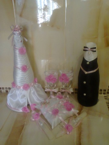 Свадебные аксессуары в наличии и на заказ. Съемная одежда на шампанское к любому празднику, дню рождения, юбилею, свадьбе, фужеры, свечи, подушечки для колец, сундучки для денег и много другое. Учитываю пожелания заказчика к цветовой гамме и тематике заказа. Цены от 100 руб. Сроки изготовления минимальные. При покупке свадебного набора - скидка. Принимаю заказы по тел. 8-903-372-88-20.