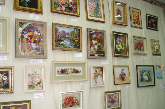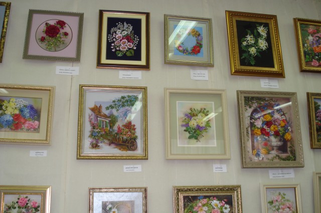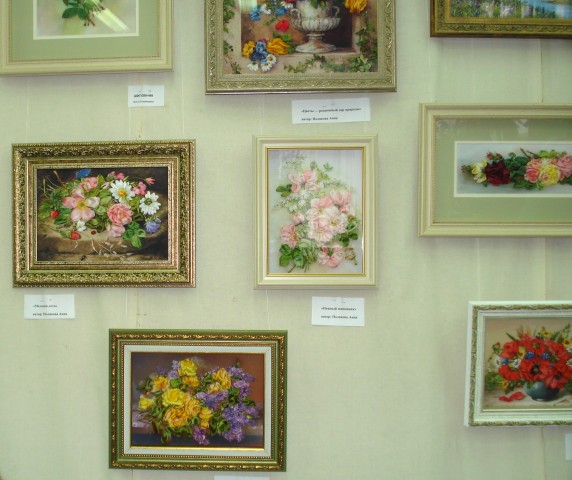 Хочу показать вам фото с нашей с сестрой выставки, которая открылась 23 августа. В этом году мы в основном подобрали работы, которых не было на аналогичной выставке в прошлом году. Здесь и новые вышивки и работы, с которых мы начинали.