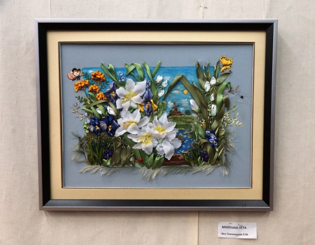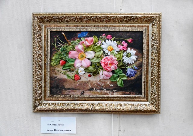 В секторе литературы по искусству отдела абонементов Центральной городской библиотеки им. С.А. Есенина города Рязани открылась персональная выставка декоративно-прикладного творчества «Фантазии из шёлковых ленточек. Новые работы Анны Поляковой и Людмилы Тихомировой».