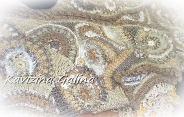 Добрый день,уважаемые рукодельницы! Показываю очередную свою авторскую работу жилет Уютный .Жилет Уютный связан крючком в технике фриформ из шерстяной пряжи альпака и мохера бежевого,белого,коричневого,кремового и др. цветов.Все цвета приглушенные , пастельных оттенков. Отделкой жилета служит рюш , вывязанный по краю крючком из пряжи альпака.