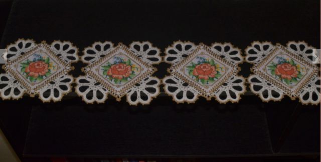 Здравствуйте, уважаемые рукодельницы! Решила показать вам "коллективную" работу. Эту салфетку для мамы вышивала она сама, а обвязывала крючком я. Салфетка состоит из четырех мотивов, но по желанию может быть и больше.