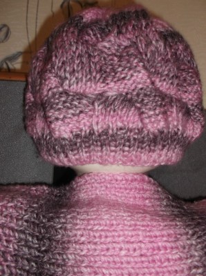 Хорошенькая!!! Цвет благородный. Хотела задать вопрос- к-во прибавок, уже прочитала. Сейчас вяжу малышу шапку с широкими косами. Прибавила, связала, померяла. Не плохо. Распустила и прибавила еще. Косы очень убавляют размер.