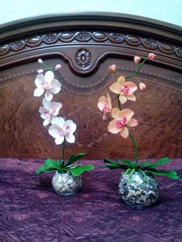 Здравствуйте форумчанки!!! Представлю на Ваш суд еще несколько своих работ. На этот раз несколько моих орхидей. Желтая и бело-желтая нашли своих хозяев и радуют их своими не увядающими цветами.
