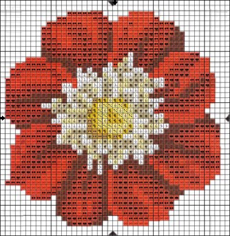 Всем ЗДРАВСТВУЙТЕ! Наконец-то решилась опубликовать свой топик. Внести свой вклад. Я долгое время просматривала информацию форума очень много полезного и интересного почерпнула. Сколько здесь талантливых , креативных, доброжелательных , милых и очаровательных форумчанок. Кто-то выкладывал на форуме, сейчас не найду адрес, небольшие схемки (сканы). Мне они понравились, небольшие, быстро вышьются, можно скомпоновать из них цветочную поляну, украсить прихватки и т.д. Я их переработала в программе РМ , буду выкладывать понемножку. Есть в машинном формате, если кому-то надо пишите, брошу в личку.
