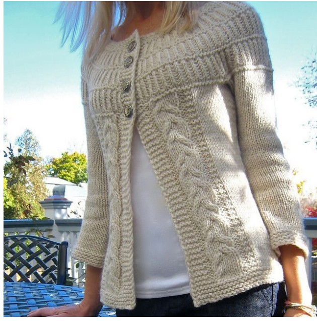 Вот оригинал, там и схемы читаемые. Для модели в светлом варианте — добавить рукава и косы на полочки.