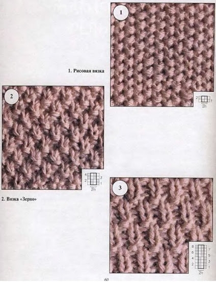 Жемчужный узор: попеременно 1 лиц, 1 изн., смещая петли после каждого 2-го ряда.