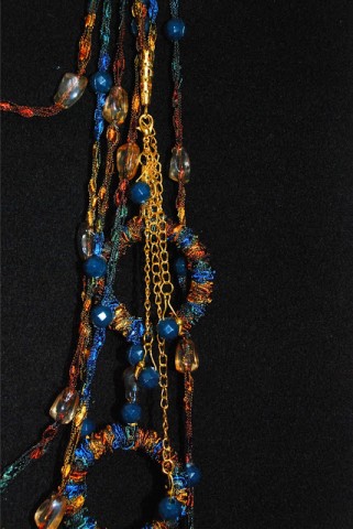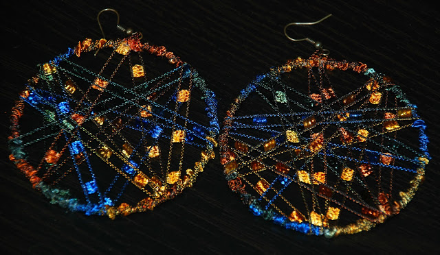 Вязанное колье. Серьги с использованием ниток для вязания.