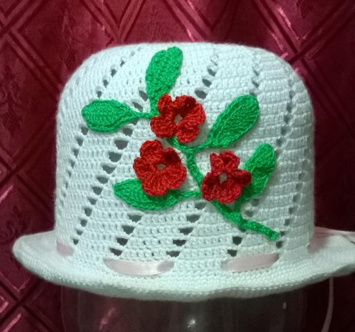 Анжела, здесь уже столько шляпок выставлялось, поэтому я хочу написать не о качестве вязания, а дать небольшой совет.Взгляд со стороны предполагаемого покупателя.так скажем.Обратите внимание на фото.Если нет манекена головы.то лучше поставить шляпку на поверхность.Вы же крахмалите их?! Значит, они обязательно будут держать форму.