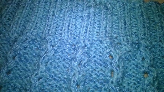 Рукава по той же схеме, но наоборот прибавляете, в рукаве промежуточных 2 петли вверху их будет 5. Рукав будет широким, но не очень. Благодаря этому вещь носится долго и не сваливается от пота.Голубая нитка добавленная к пряже это акрил 100% может с шёлком. Она совершенно не тянется.