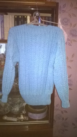 Этот свитер перевязала трижды. Нитки Пехорка, всегда сильно растягивались, из за этого приходилось перевязывать. Но на этот раз прикупила другие нитки. И изделие сразу преобразилось. Ещё не готов пока воротник хомут. Свитер смотрится обалденно.