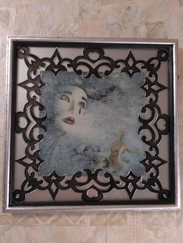 Обратный декупаж, вживление. Лицевая сторона - фацетный лак.