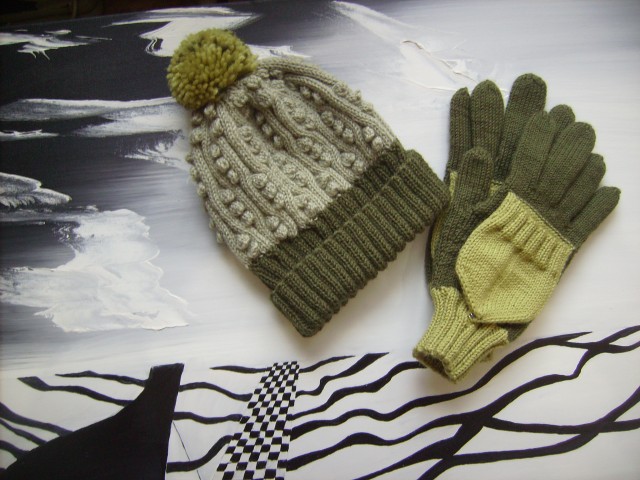 Скоро зима,поэтому нужно утепляться.Была у меня пряжа двух цветов,но ее было мало на комплект в одном цвете-вот и решила вязать так,тем более цвета дружат между собой.Пряжи хватило на шапочку и на перчатки с откидным верхом.Перчатки подходят для очень холодной зимы или для тех,кому "Пора в горы"-у нас зимы,практически,теплые.Показываю комплект,как пример.Можно связать в другом цвете и другим узором.Пряжа-шерсть 100%,метраж примерно 150-200 м/ 100 г